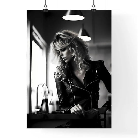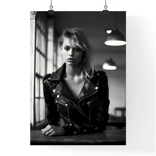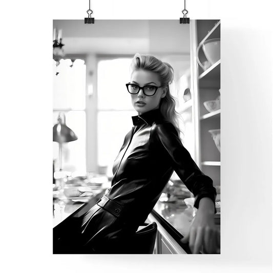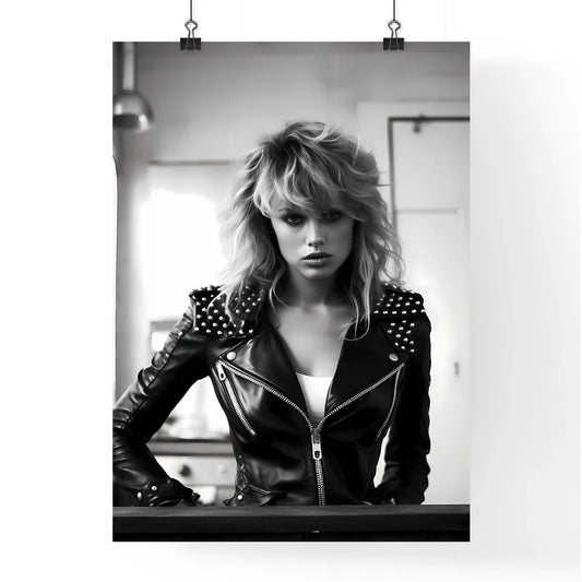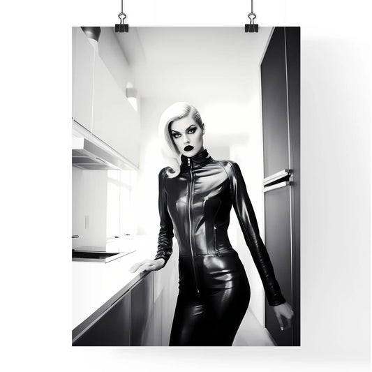 A Poster of leather goddess in a trendy kitchen - A Woman In A Leather Jacket