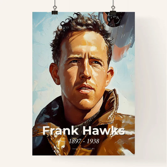 Portrait of Frank Hawks, 1897 - 1938. Impressionistic painting of a man in a leather jacket.
