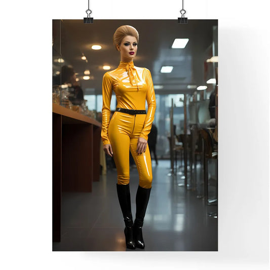 A Poster of beautiful upright standing lady - A Woman In A Yellow Latex Suit