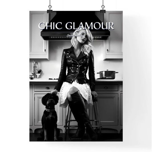 A Poster of leather goddess in a tres chic kitchen - A Woman Sitting On A Stool With A Dog