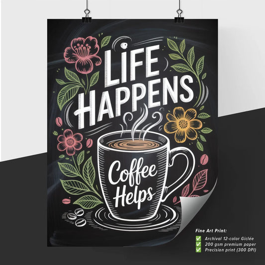 Life Happens, Coffee Helps: A Charming Illustration Celebrating the Comfort and Joy of Coffee.