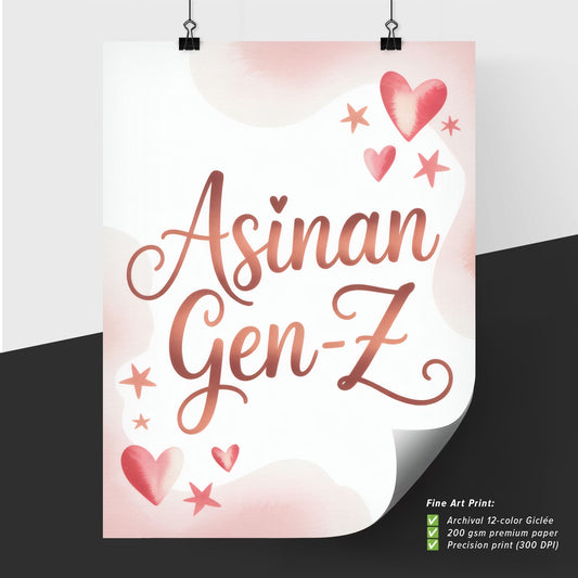 Stylish and Playful 'Asinan Gen-Z' Typography Design with Hearts and Stars for Trendy Youth Themes.