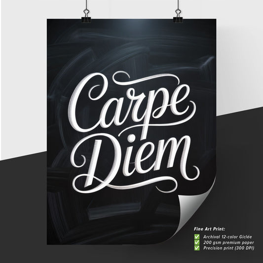 Elegant Typography of 'Carpe Diem' on Dark Background for Inspirational Motivational Themes.