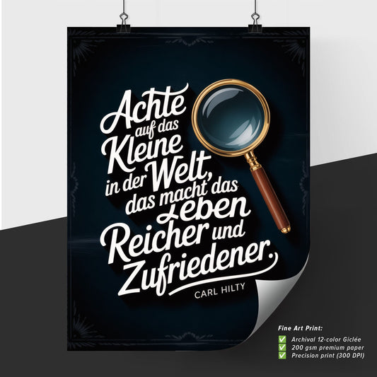Embrace Life's Little Joys: A Quote by Carl Hilty with a Magnifying Glass Design