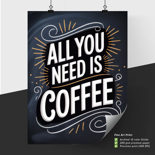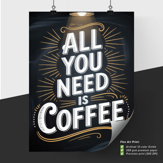 All You Need is Coffee: A Motivational Quote for Coffee Lovers and Barista Enthusiasts.