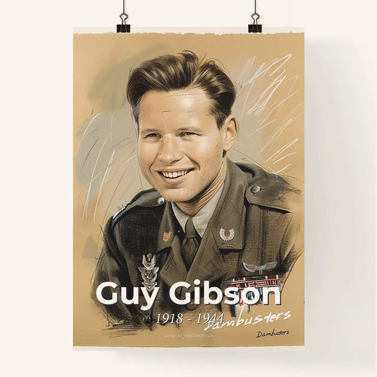 Guy Gibson: Dambusters Legend - Exquisite Contemporary Portrait Print with Dynamic Hatching & Highlights on Beige Background