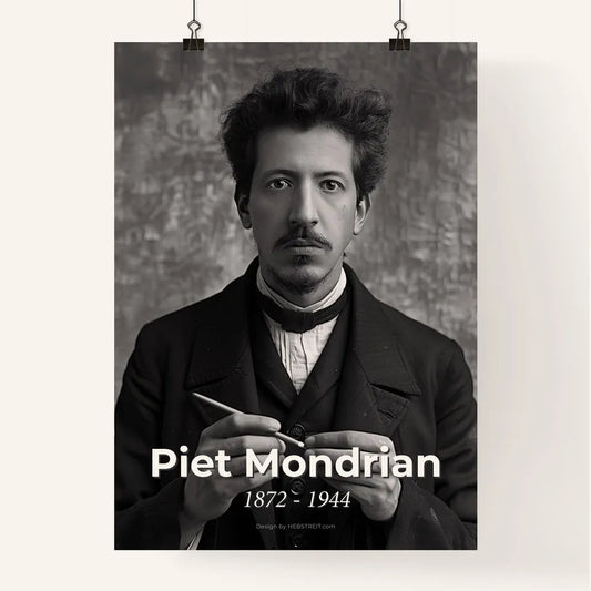 Timeless Elegance: Piet Mondrian Portrait - Optimistic Abstract Art on Rustic Background, Premium Prints for Home Decor