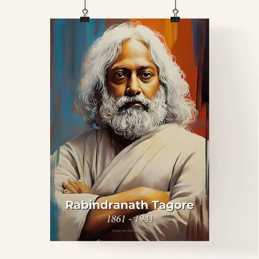 Portrait of Rabindranath Tagore, 1861 - 1941. Impressionistic painting of a man with white beard and long hair.