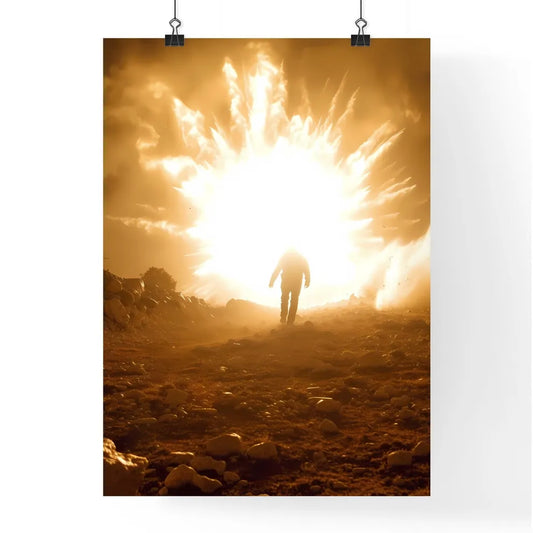 The religious trinity except with napoleon, clausewitz and Genghis Khan - Art print of a person walking up a hill with a explosion behind him