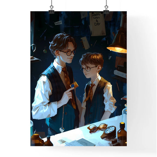 A Poster of happy father's day wallpaper - A Cartoon Of A Couple Of Boys In A Room