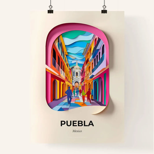 Vivid Puebla, Mexico - a colorful city street with people walking down it