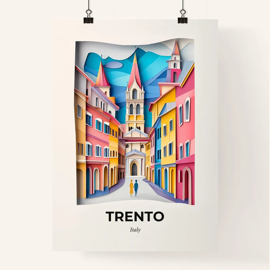 Vivid Trento, Italy - a couple walking down a street past a tall building