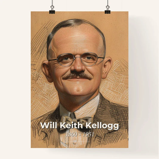 Elegant Portrait of Will Keith Kellogg: A Dynamic Contemporary Art Tribute to the Pioneer of Breakfast Cereals, Perfect for Home Decor