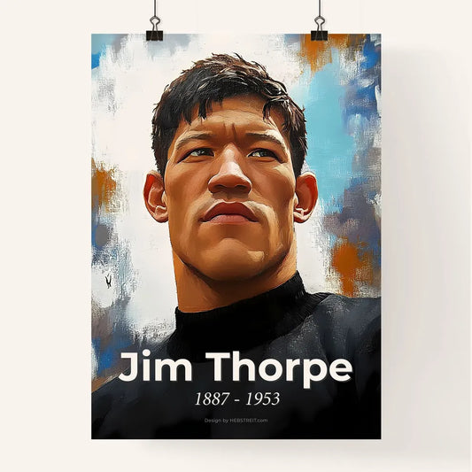 Portrait of Jim Thorpe, 1887 - 1953. Impressionistic painting of a man in a black shirt.