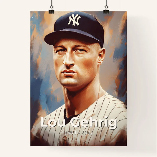 Portrait of Lou Gehrig, 1903 - 1941. Impressionistic painting of a man wearing a baseball cap.