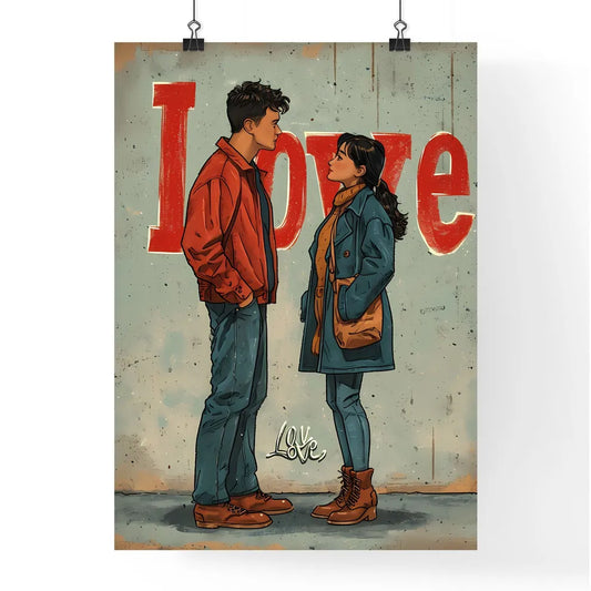 Cute pastel Love illustration - Art print of a man and woman standing in front of a sign