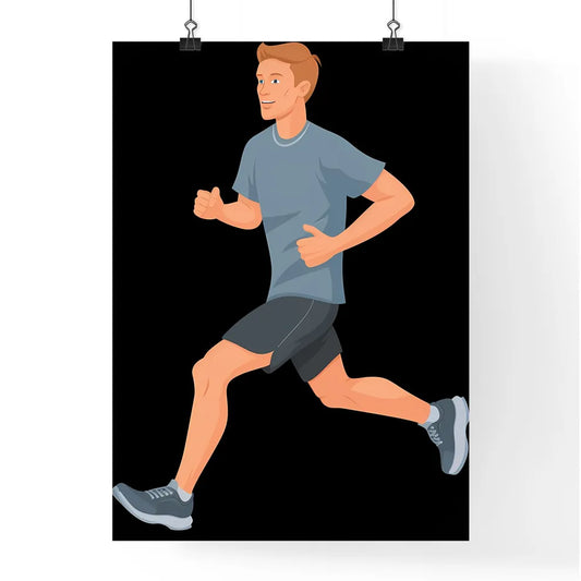 T-shirt design on black background, running Niche, flat illustration Style, - Art print of a man running with his thumb up