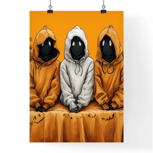 Kids wearing Halloween costumes - Art print of two girls wearing person hats