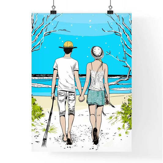 Beach Holidays For Romantic Young Couple - A Man And Woman Holding Hands Walking On A Beach