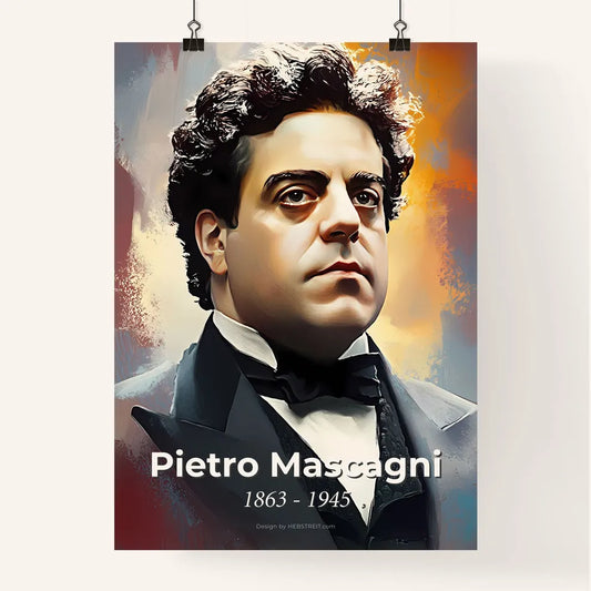 Portrait of Pietro Mascagni, 1863 - 1945. Impressionistic painting of a man in a tuxedo.