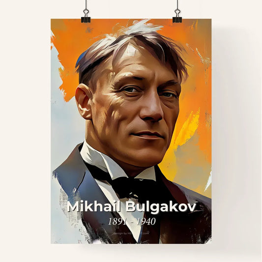 Portrait of Mikhail Bulgakov, 1891 - 1940. Impressionistic painting of a man in a suit.