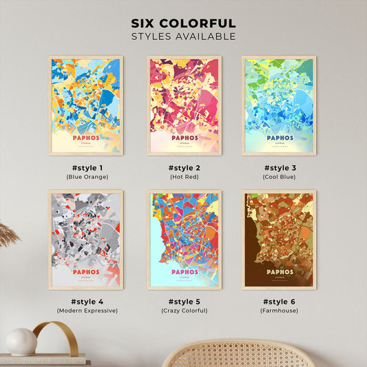 Colorful PAPHOS CYPRUS Fine Art Map Poster | Customizable