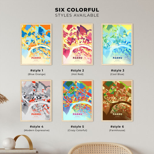 Colorful PÄRNU ESTONIA Fine Art Map Poster | Customizable