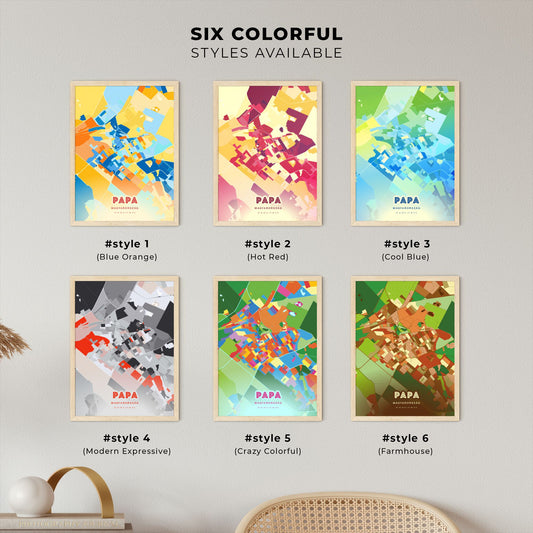 Colorful PÁPA HUNGARY Fine Art Map Poster | Customizable