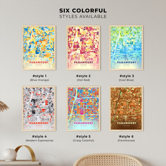 Colorful PARAMOUNT CALIFORNIA Fine Art Map Poster | Customizable