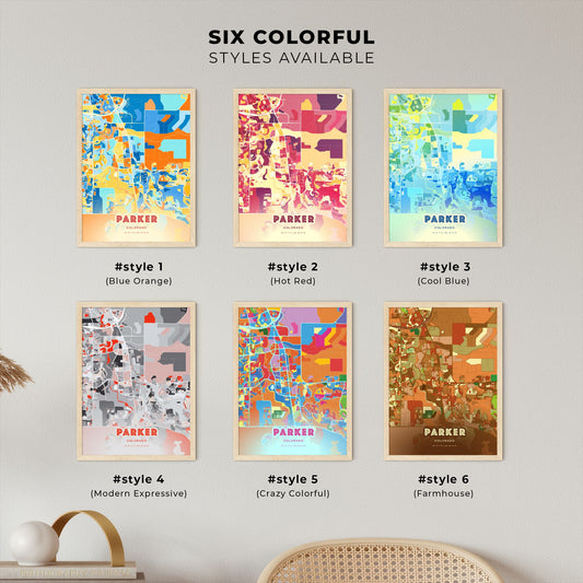 Colorful PARKER COLORADO Fine Art Map Poster | Customizable