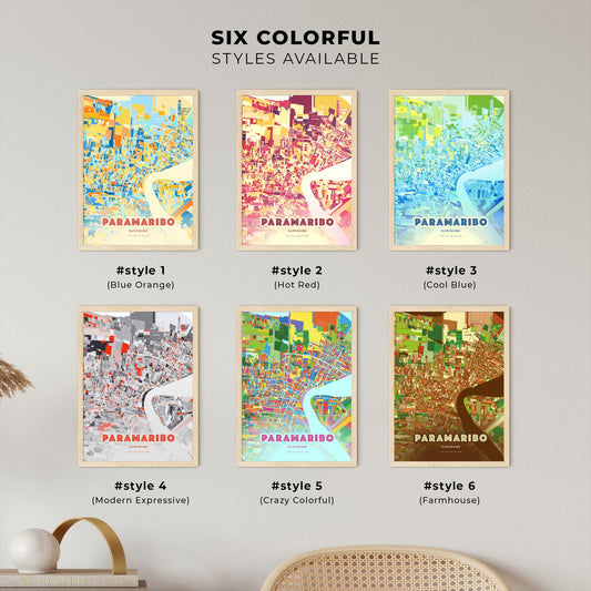 Colorful PARAMARIBO SURINAME Fine Art Map Poster | Customizable
