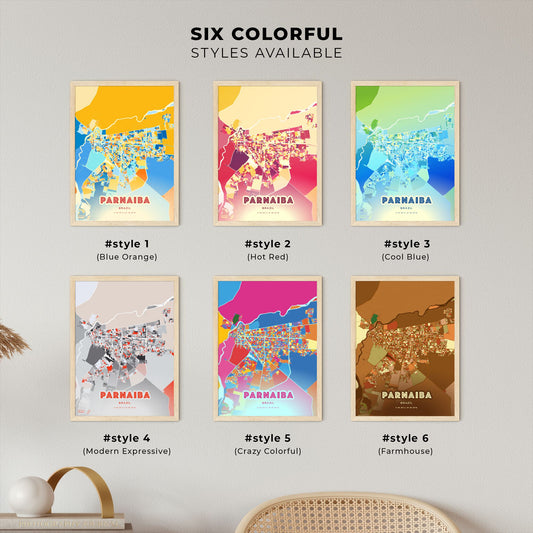 Colorful PARNAIBA BRAZIL Fine Art Map Poster | Customizable