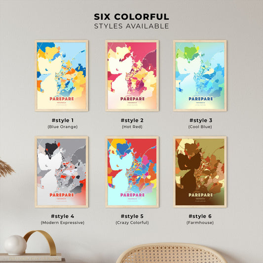 Colorful PAREPARE INDONESIA Fine Art Map Poster | Customizable