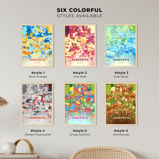 Colorful PANEVĖŽYS LITHUANIA Fine Art Map Poster | Customizable