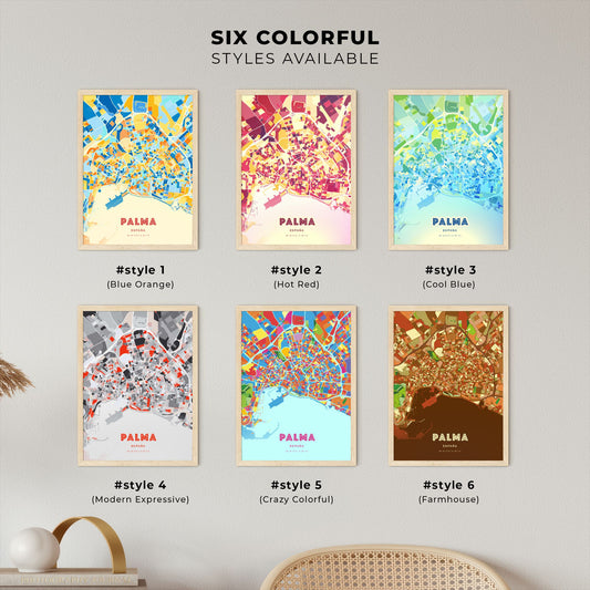 Colorful PALMA SPAIN Fine Art Map Poster | Customizable