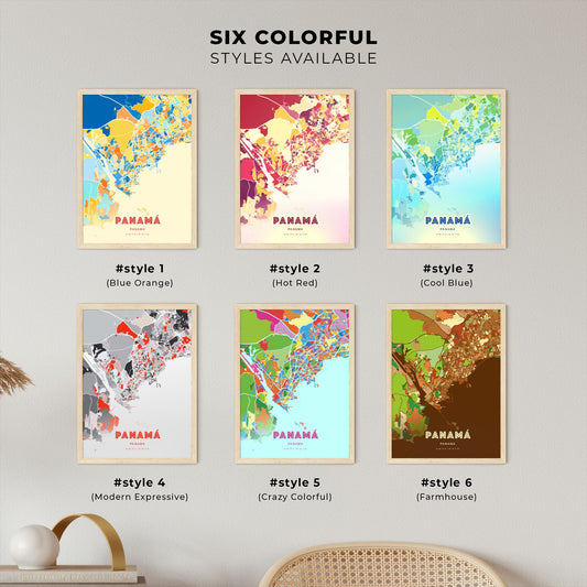 Colorful PANAMÁ PANAMA Fine Art Map Poster | Customizable