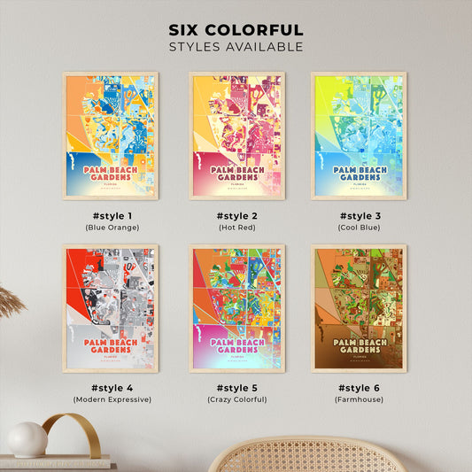 Colorful PALM BEACH GARDENS FLORIDA Fine Art Map Poster | Customizable