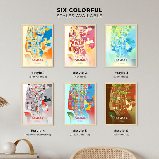 Colorful PALMAS BRAZIL Fine Art Map Poster | Customizable