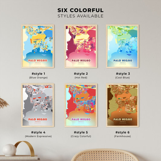 Colorful PALO NEGRO VENEZUELA Fine Art Map Poster | Customizable