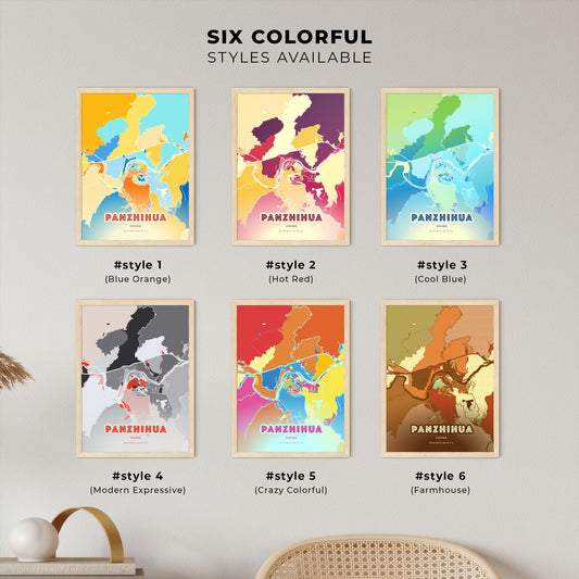 Colorful PANZHIHUA CHINA Fine Art Map Poster | Customizable
