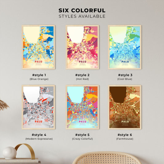 Colorful PALU INDONESIA Fine Art Map Poster | Customizable