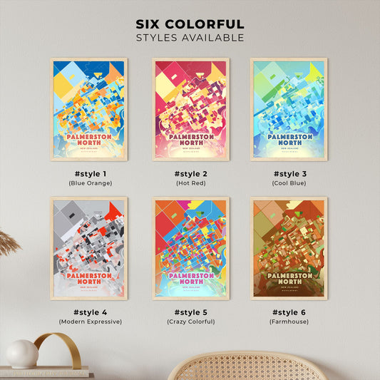 Colorful PALMERSTON NORTH NEW ZEALAND Fine Art Map Poster | Customizable
