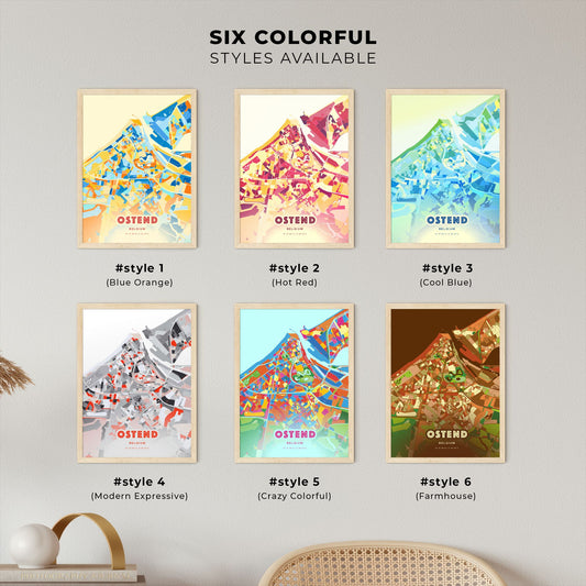 Colorful OSTEND BELGIUM Fine Art Map Poster | Customizable