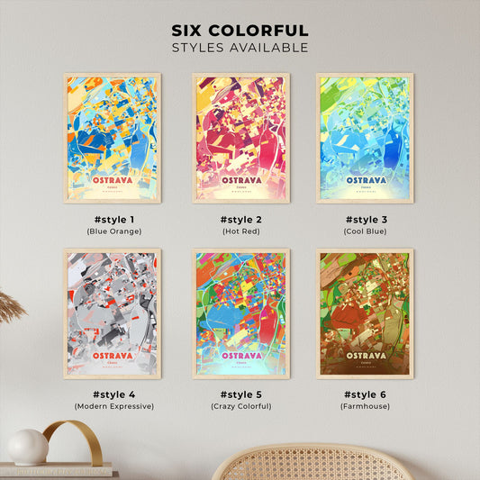 Colorful OSTRAVA CZECHIA Fine Art Map Poster | Customizable
