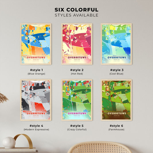 Colorful OVERBETUWE NETHERLANDS Fine Art Map Poster | Customizable