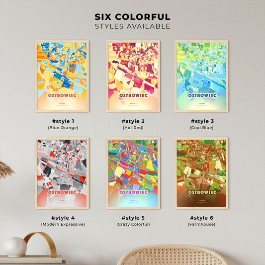 Colorful OSTROWIEC ŚWIĘTOKRZYSKI POLAND Fine Art Map Poster | Customizable