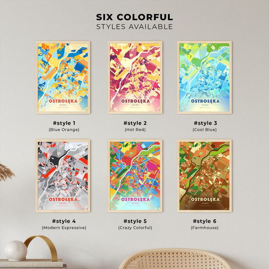 Colorful OSTROŁĘKA POLAND Fine Art Map Poster | Customizable