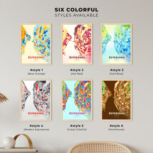 Colorful ÖSTERSUND SWEDEN Fine Art Map Poster | Customizable