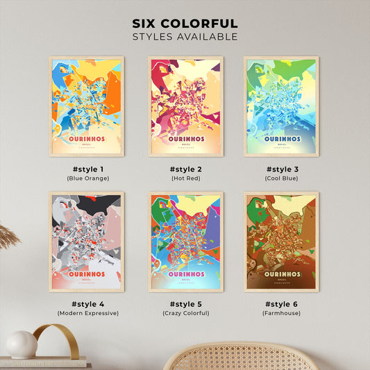 Colorful OURINHOS BRAZIL Fine Art Map Poster | Customizable