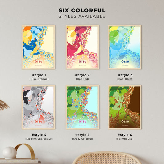 Colorful ŌTSU JAPAN Fine Art Map Poster | Customizable